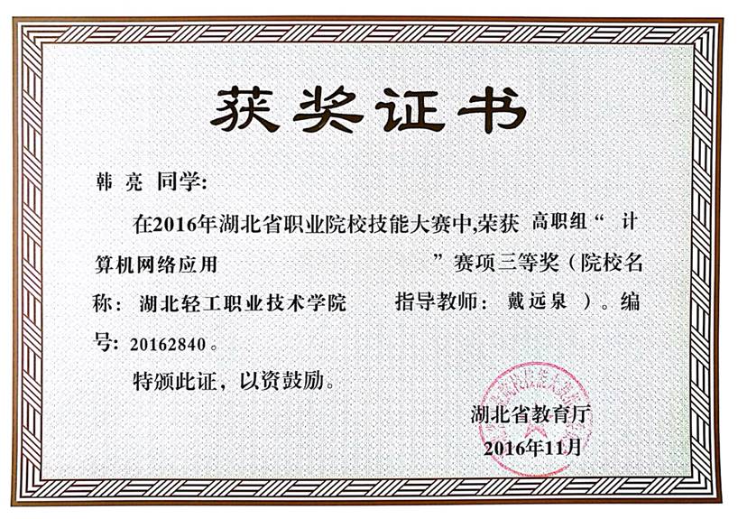 2016年湖北省职业院校技能大赛高职组“计算机网络应用”赛项